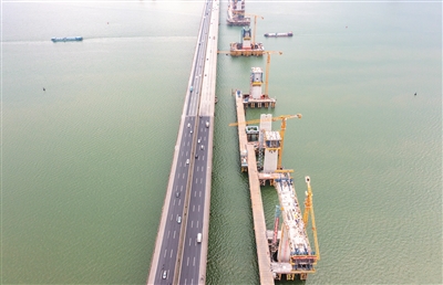 4月2日,由中铁广州局承建的广湛高铁站前三标项目,跨西江大桥项目正热火朝天建设中。目前,广湛高铁正全线火热建设中。广湛高铁珠三角枢纽(广州新)机场段建设、跨珠三角环线高速特大桥、广湛高铁佛山特大桥等重点项目不断刷新“进度条”,广湛高铁佛山站综合交通枢纽配套工程前期工作也在加速推进中。/佛山市新闻传媒中心记者洪海摄