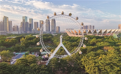 佛山新城的地标摩天轮全景水晶舱近日全部挂载完毕。今年,这座新地标就会正式对外开放,届时市民游客可以坐上摩天轮,将东平河两岸美景尽收眼底。(图/佛山市新闻传媒中心记者周春 佛山传媒影像俱乐部李新燕、胡名坚)