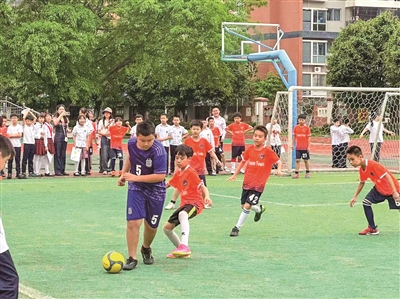 记者随机进入沧江中学附属小学的一间课室,发现新学期的课程表里每天都有体育锻炼,并对课程设置进行了内容细分。“我们根据中高低年级安排体育课时,其中一、二年级每周4节体育课,三到六年级每周三节体育课。”沧中附小体育科组长莫伟灿介绍,为了让学生在小学阶段能基本掌握至少3项体育技能,学校按照不同年龄段开设篮球、足球、武术等专项课程,利用大课间普及跳绳、踢毽子、羽毛球等运动,通过多样的课程设置配合重点发展的运动项目,帮助学生更好地掌握体育技能。