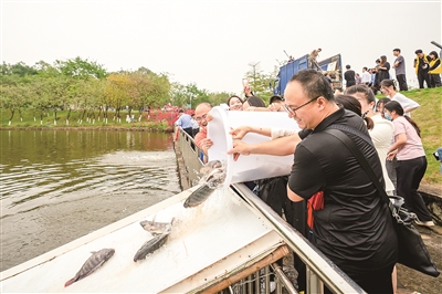 佛山日报讯 记者何艳纯 通讯员罗志君报道:“放鱼开始!”4月14日下午,位于佛山市三水区云东海街道的广东财经大学佛山校区内,在学校师生及校友代表的“欢送”下,一尾尾活蹦乱跳的鱼儿跃入湖中。